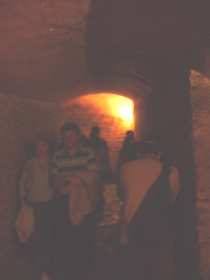 そして、お約束のドームの天井(笑)。修繕中のようで、こんな風になっちゃってますが・・・。中心にはアラビア文字でコーラン第24章の一節が書かれているのだそうです。(模様にしか見えませんけど・・・)一方、四隅には天使が。キリスト教とイスラム教が同居してます・・・。 ドームは、軽く仕上げるために、ロードス島(ティベリウスが隠棲していたところですね〜♪)で焼かれた特殊なレンガで作られています。重さは通常のレンガの1/10だそうで・・・。