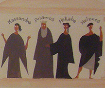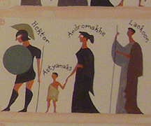 左は、プリアモスパパたち。母ヘカベや、武器を持たない悲しき預言者、カッサンドラなどの姿も。中央はヘクトルの家族。ヘクトル、アステュアナクス、アンドロマケ。そして後ろにはなぜかラオコーン。ラオコーンは、ヴァチカン博物館の彫刻が有名ですね!(ローマの旅に写真&解説あり。 →こちら ) 右はアホ(笑)パリスと、ヘレン。