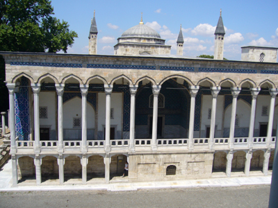 ☆ タイル博物館(Cinili Kosk Csの下に髭、oはウムラウト つき ) ☆ 考古学博物館と同じ敷地内にあります。この建物が建設されたのは、1472年だそうで、非宗教的建築物としてはイスタンブールで最古の歴史を持つ重要な建築だそうです。かつては夏の離宮としてもちいられていたとか。中には暖炉(シュミナSomine Oはウムラウト付 )その他、“館”としての面影も残しています。展示物はタイル、その他陶磁器が主でした。(写真は考古学博物館から撮ったもの)
