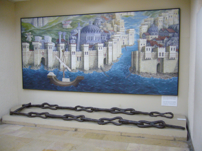 考古学博物館の最後をかざるのは、スルタン・メフメット2世のコンスタンティノープル攻略の際、ビサンチン帝国側が金角湾封鎖に用いたという、大鎖です!!リファレンスがないので大きさが分かりにくいですね。鎖の鉄の太さが女性の腕くらい・・・ってとこでしょうかl。