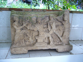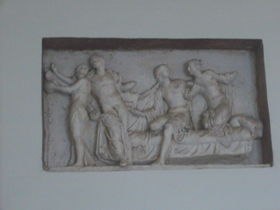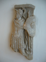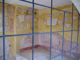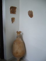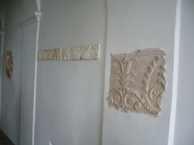 ここの壁面には、発掘品もいろいろと飾られています。こんな風に、柱頭?部が柱のラインにあわせて埋め込まれたり。