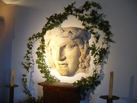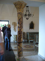こちらは、フランス式サロンにある、メデューサの頭部。ハドリアヌス帝の時代のもののようです。・・・そして、右はヴェネチア式サロン。部屋の中の柱も発掘品・・・