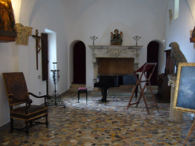 ↓こちらはチャペル、ですが、ムンテ氏は図書室、音楽室として使用していたそうです。彼は歌もお上手だったらしく、バリトンの美声の持主だったようです。そして、よくこちらにお客様を招待し、アンサンブルを楽しんだとか。スウェーデン女王さまとかもお客様の常連だったようで、アンサンブルを楽しんだりもしたようです。