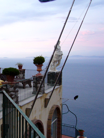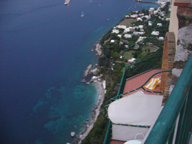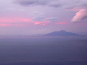 ○ チェーザル・アウグストゥスからの眺め ○ 午前中は大嵐にあったというのに、夕方はこんなに綺麗な景色でした・・・。右は、ヴェスヴィオ山です。