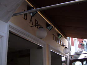 ↓左の写真は、フニコラーレ(ケーブルカー)の駅のテラスです。とても見晴らしがよく、島の全貌が見えます♪ そして右の写真は・・・読みづらいですが、広場の周りにあった、ティベリオという名のバール。なんだかんだいって、ティベリオという名前はよく見ます。・・・結構愛されてる?ティベリウスさん♪(笑)