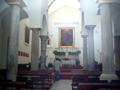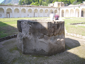 ここの見所は!・・・アウグストゥスが建てたといわれる、海の離宮(Palazzo di Mare)から移設された大理石柱です。でも一部は、ここからさらにカゼルタ(どこにあるんだろ〜不明です)の王宮に移されてしまい、かわりに花崗岩の柱が据えられているとのこと。石の種類やデザインがいろいろと変わっているのも興味深いですね。どんなお屋敷だったんでしょうか・・・。
