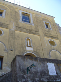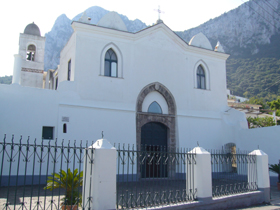 ☆ サン・コスタンツォ教会(Ch.di S.Costanzo) ☆ カプリ島の守護聖人、聖コスタンツォを祭る教会。ビサンチン様式の教会が987年に古いバシリカ様式の教会の土台の上に建てられた後、1300年から1930年代までの数世紀にわたり拡張、改装されてきたそうです。987年から司教公邸であり、司教が1560年に聖ステファノ教会に移ってからは、修道者の定住所となったそうです。また島民が丘の上のカプリに住み始めてからは、サン・ステファノ教会のほうが町のメインの教会になっていったそうで、1723年、正式にサンステファノ教会のほうが正式な地区教会になったようです。
