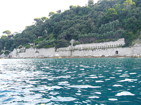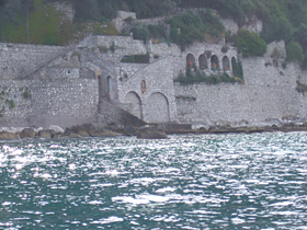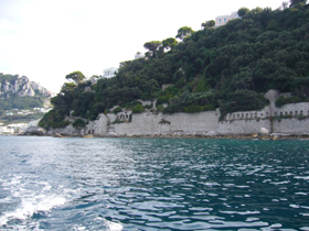 また、地図上では、離宮に続いてティベリウス帝の浴場、と書かれています。ですが、実際沖合いから眺めると、どこからが浴場なのかいまひとつはっきりせず・・・。
