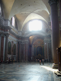ディオクレティアヌスは、かつて、キリスト教徒を弾圧したことがあります。対キリスト教徒勅令が303年に発令されています。よって、この浴場の建設期間10年のうち2年間は、強制労働にキリスト教徒が借り出されたようです。よって、この教会が、『聖母マリアと天使と殉教者の教会』という名前になっているようです。