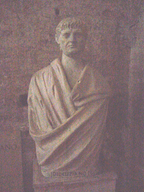 大広間の奥には小さな部屋があり、そこはローマ時代の遺構が残っているように見受けられます。そして、その薄暗い部屋の中に、ディオクレティアヌスの彫像がありました。とても暗かったので、フラッシュ無しの写真(左)は加工して何とか見える、という感じです。一方、右側はフラッシュをたいてとりましたが、やっぱり、フラッシュなしのほうが表情はいい感じですよね・・・。もっと高感度なカメラで撮らないと駄目、ってことか・・・。