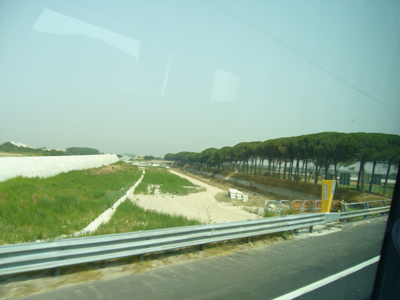 唐傘松の並木が続いている道が、ローマ最初の完全舗装道路である、アッピア街道です。ナポリへ向かう途中でバスの中から必死で写真を撮りました。 当時財務官であり、ティベリウスのご先祖様でもある(←ここが重要、笑)、アッピウス・クラウディウスが立案し、紀元前312年に敷設しました。工事の最高責任者でもあったアッピウスは、街道の平坦度をたしかめるためにサンダルを脱いで素足で歩いてみたそうです。以前にTVで放映していた、F1誘致に成功した富士サーキットを思い出します。何か道具を用いて、平坦度を測定していたと思うのですが・・・。しかし、古代の工具、計測器などなどの水準を考えれば、ローマ人の技術はそれ以上のことだとも思えます・・・。ちなみに、ローマ帝国を網の目状に走っている街道や橋、トンネルは、軍団兵により敷設されています。軍事上、政略上の必要性から敷設されたためですが、もちろん、一般市民もその恩恵を受けられたことはいうまでもありません。 アッピア街道は、ローマ人から“街道の女王”と呼ばれていたそうです。ローマ街道とはどうあるべきかのモデルを、この街道は指し示しているためです。ローマ市近郊では、当時のままの道が一部残されていますし、マイルストーンも建っています。(ただし、本物はカピトリーノ美術館に保管されており、道端に建っているのは復元されたもの。)本当はそこにもいきたかったのですが、今回は時間が足りなくて断念しました。