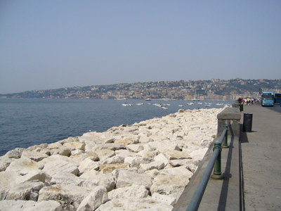 カプリ島観光組を港で下ろしたあと、卵城の近くでバスを降りて写真撮影タイム。“ナポリを見て死ね”とまでいわれる風景・・・のはずなのですが、それほどでも?(笑)。ナポリでは、ここでバスを降りるだけで、あとはバスの中からの観光でした。ナポリの博物館もいろいろ面白そうなものがあるので、いつかは行ってみたいのですが・・・・・。