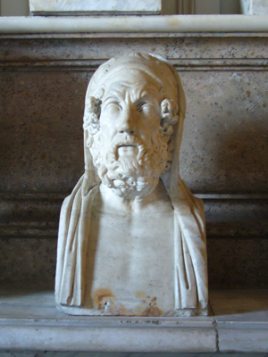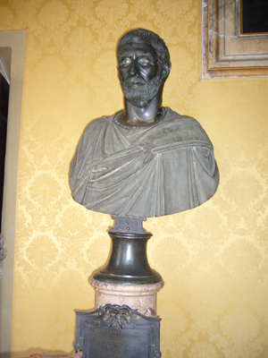つづいて、哲学者の間。哲学者だけでなく、詩人などの像もあり。で、こちら、左は、ホメロス大先生(笑)・・・だと思います。(なんせ、イタリア語表記しかないもので。)イーリアスとオデュッセイアの作者、といわれていますね。そして、右は、エウリピデス先生。・・・まあ、これらの先生方は、顔をみたからってどう、ということもないのですが・・・・・・(笑)
