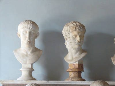 続いては、新館で、階段の踊り場にあった像。ティベリウス(左)とアウグストゥス。な〜んか、やっぱりアウグストゥスのほうが美男(泣)