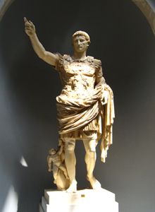 この像は、アウグストゥスの死後、妻のリヴィアが作らせたものだそうで、フラミニア街道沿いの彼女のヴィラから1863年に発見されたそうです。