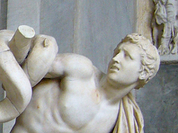 その2.『ラオコーン』。こちらも、紀元前2世紀のギリシャ彫刻を元に紀元1世紀にローマで作られた模刻。当時の著名な彫刻家である、ハゲサンドロス、アタナドロス、ポリドロスの作。1506年にエスクィリーノの丘から発見され、ミケランジェロが絶賛したそうです。これを、ユリウス2世が購入してヴァチカンに運ばせたのです。