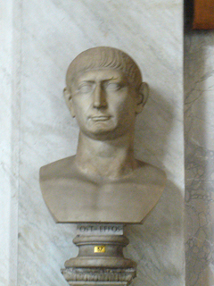 まず、左の頭像。これは、1779年にOtricoliのバシリカで発見されたもの。樫の葉の市民冠を被ったこの像、元は甥で前の皇帝カリグラの像だったようですが、彼が『記録抹殺刑(damnatio