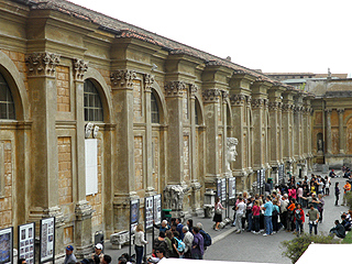 歴代教皇の、いわばプライベートコレクションの集大成・・・である、世界でも指折りの博物館です。大理石?作りの大きなゲートは出口のほう。入り口はこの向かって左側にあります。