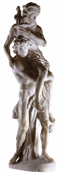続いては、 「剣闘士の間」に設置されている、『アエネアスとアンキセス』。アイネイアスって、やはりローマへの祖国愛を表しているんですね。 これは、アイネイアスが、老父アンキセスを背負い、幼い息子アスカニウスと共にトロイを脱出する場面を現しています。「アスカニウスは、家の聖火を携え、アンキセスはペナテス、すなわち古代ローマの家の守護神の像を捧げている」(以上、ボルゲーゼ美術館の本より) この作品は1618〜1620年にわたって製作されたものですが、「父の寄与の方が著しい」と評する研究者も多いらしいです。 (ちなみに・・・美術館の本に記載された作品タイトルは、「アエネアス」なのに、説明文は「アイネイアス」なんですよね〜。どちらを採用すればよいのやら)