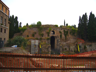 これは、アウグストゥスにより、紀元前28年に作られた皇帝一族のお墓です。今はレンガむき出しですが、当時は大理石張りの壮麗な建造物だったそうです。ティベリウスも・・・亡くなったときには民衆に「ティベリス(テベレ)川に放り込め!」とか言われたらしいですが・・・ちゃんとここに眠ってます。この点では、カリグラ帝に感謝しないといけませんね(笑)。