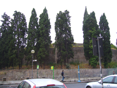 夫の従妹のリクエストのブランドショップで買い物をした後に通りがかりました。なんとまあ、工事中ではないですか!・・・ということは。このあたりも再整備され、近々生まれ変わるんですかね・・・そしてそのときには、中にはいることも出来るのでしょうか・・・ワクワク。(ちなみに、2007年はこんな感じでした。⇒) 右の写真は、後姿です。後ろ側のほうがたくさん糸杉が残っていますね・・・。