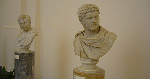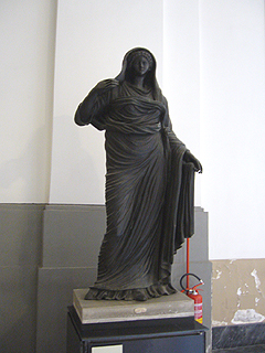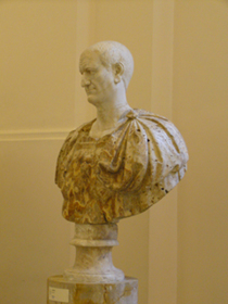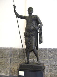 続いては、女性二人。左がリヴィア(Livia:ティベリウスの母でアウグストゥスの妻)、右がアントニア・ミノル(Antonia Minore:アントニウスとオクタヴィアの娘で、ティベリウスの弟ドゥルーススの妻)。いずれもエルコラーノのTeatroで発掘されたもののよう。母は、「リヴィアは意地悪そうな顔してる」とか言ってますが・・・(笑)。多分それは、眼の部分がなくなっているから表情がコワくなっているせいじゃないかな? 一方、アントニアはなかなか美人では?と思います。