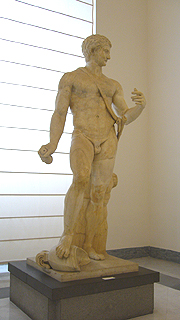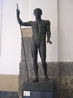 続いては、おそらくは、ファルネーゼ・コレクションのクライマックスでしょう。『ファルネーゼの牡牛』です。 ローマのカラカラ浴場から出土したみたいです。ギリシャのオリジナルは紀元前160〜50年のもので、これは2世紀後半から3世紀前半に作られたもののよう。出土した際は、バラバラになっていたみたいです。そのオリジナルはアジアのやや黄味がかった大理石部分。あとは、16、18、19世紀に、(古いものも含む?)様々な大理石を用いて修復されているようです。 ![]() ・・・ちょっと中途半端なのですが・・・博物館まだまだ長くなりそうなので、ここで一息。