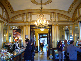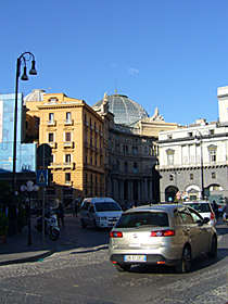 こちらは、ガレリアの内部。左の写真の、ガレリアの向こうは、イタリア4大歌劇場のひとつ、サン・カルロ劇場。1737年、ブルボン家のカルロ王の聖名祝日に落成した、イタリアで最も由緒ある、最も豪華なオペラ座・・・なのだそうです。 いつかここでオペラでも鑑賞したいですねえ・・・。