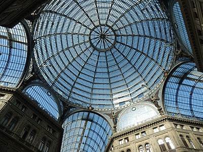 ☆ ウンベルトI世のガレリア (Galleria Unberto I) ☆ ![]() 有名な、ミラノのガレリアの20年後、1890年に建設されたもの。イタリアが統一された後なんですね・・・。 コレラが流行した後に、この地のスラム街が撤去されて建築されたのだそうです。ちなみに、ドームの高さは58m。 こちらは、ホテルから見えるガレリア。真夜中も中から光が漏れて美しかったです。 ちなみに、ガレリアの奥は船みたい。夜中にも、明け方にも船の行き来は見えました・・・。