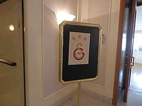 こちらは、朝食を食べに行ったとき、昨日の大騒ぎなチーム?の集団用の朝食広間の入り口でした。このマークが集団のシンボルなのかなと思ったのですが、ちょっと調べただけではわかりませんでした。(調べ方にも問題があったかもですが) |
