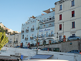 前2回のカプリ島滞在の際には、アナカプリ外れのチェザル・アウグストゥスに泊まりました。とても素敵なホテルなので、できればそこにと最初は思ったのですが・・・何しろ今回はハイシーズン!さすがセレブのリゾートって感じで・・・カプリ島の宿泊費はどこもものすごいことになります・・・。よって今回はさすがにアウグストゥスさんはちょっと無理。そのため今回は、若干お手頃目な価格で泊まれる、マリーナグランデの真ん前の、こちらのホテルにしました。若干ホテルの設備や朝食は質素にはなりましたが、十分にこのホテルを満喫しました!まず、この地の利というか・・・便利さはなかなか素晴らしい!・・・です。それに、やはり、違う町に泊まってみるのは貴重な体験だと改めて感じました♪