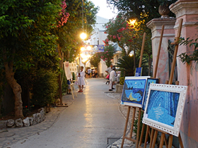 アナカプリの町では、ちょうど“アート・イベント”のような催しが行われていました。オルランディ通りにlこんな感じでいろいろな作品が展示されているのです。 夕暮れ時、少し涼しくなって緩やかなこの通りをそぞろ歩きしながら個性的な作品を眺めるのはなかなか素敵♪