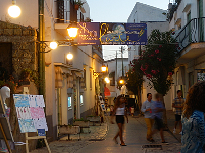 昼間は大賑わいの、カメレッレ通り(Via Camerelle)。 私は、この通りをゆっくりウインドウ・ショッピングとかしたいのに、夫はまったく興味がないので、いつも素通り。今回は・・・少しはゆっくり歩きましたが、素通りしたのは一緒(涙)。