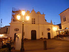 教会の左わきから、正面の広場に出てきました。このあたりから引き換えし、バス乗り場へ。そしてバスで、カプリの町に向かいました。 |
