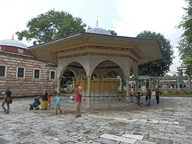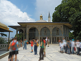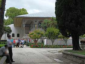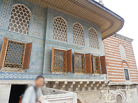 このあたりは,宮殿の一番奥の方.第4内庭に面しているこちらの建物は,ソファの館(テラスの東屋)です.ハレムの建物を除くと,宮殿内で唯一の木造建築だとか.1703年,スルタン・アフメット三世の治世下に建てられたそうです.当時,ここは休息用の部屋として使用されていたようですが,後のチューリップ朝(1718~1730年)になると賓客用の部屋として利用されるようになったようです.なお,チューリップ期,毎年4月になるとかつてこのあたり(ソファの館の前)にあったチューリップの庭で盛大な祭りが催されたのだそうです.