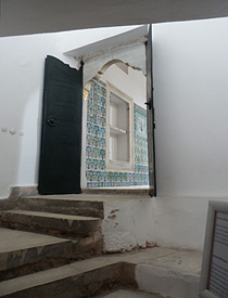 左の写真は,建物の2階への階段です.女性たちの部屋へ通じるものです. ・・・小さな,質素な階段ですよね.華やかなイメージのハーレムですが,この階段が,ここで暮らす女性たちの置かれていた状況を端的に表しているような気がします. |