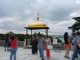 左の写真は,イフタールのポーチ.ラマダンの時に ,日没後最初の食事をスルタンがとった場所だそうです.ここは,スルタン・イブラヒムが1640年に作ったポーチだそうです.右の写真は,ポーチ付近からの眺め.新市街とガラタ塔がよく見えます.