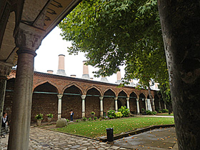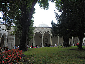 | こちらは,「寵姫たちの内庭」,で,おそらく建物の右側はハレムの女性たちの部屋,正面がスルタン・アブドゥルハミット1世の部屋. |