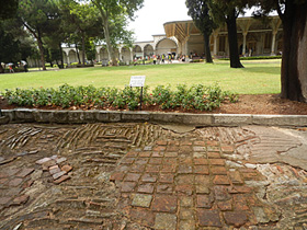 第2庭園.遠くにハレムの入り口が見えます.手前は,古い道の跡?と思ったら,貯水槽の跡のようです.(プレートにはBYZANTINE CISTERN,とあります)5~6世紀,宮殿(の位置?)の近くにはたくさんの貯水槽があったようで,これらはオスマン人が使用していたようです.