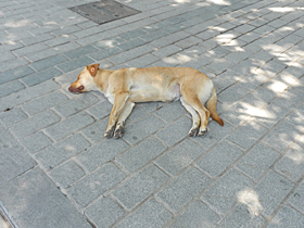 代わりに、暑さで伸びてる犬を見つけてしまったので、その写真のご紹介です。