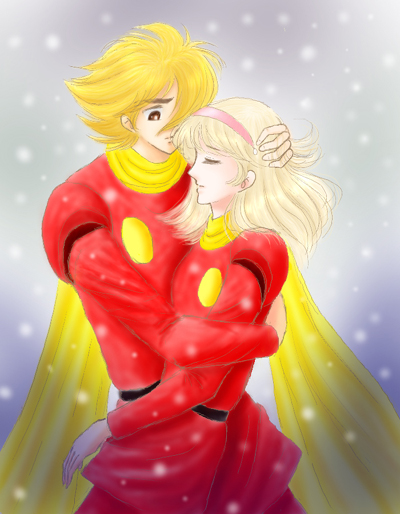 ・・・ 二人 ・・・この絵・・・いつ描いたのか・・・記憶がないです。わりとペンタブをかってすぐかもしれませんね。な〜んかバランス悪いし変なのですが、ジョーの顔だけは何となく気に入っているので(笑)ここで思い切ってアップします〜!ジョーのお誕生日に何にもかけなかったので、これでお祝いの代わりということで(汗)。