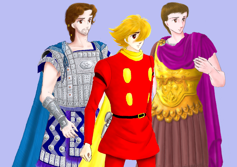 左から、トロイ王子ヘクトル、サイボーグ009こと島村ジョー、そしてローマ2代目皇帝となるティベリウスです。