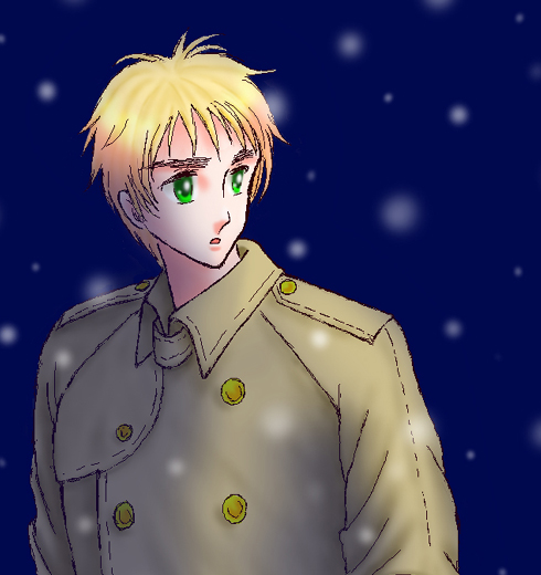ヘタリアの原作3巻とDVD8巻に登場する、聖夜の英独サッカーエピソードが好きで・・・それで何となく、トレンチコートを着たイギリスくんを描きたくなりまして(笑)。またまた描いてしまいました・・・!(このエピソードで着てるのがトレンチコートかっていうとちょっと微妙ですが・・・)