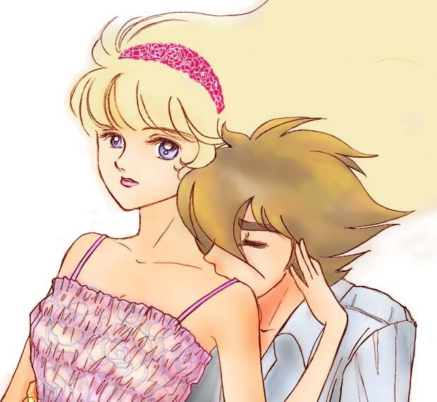 なんとなんと・・ヒソカに憧れていた みつぐさまから、こ〜〜んな素敵な作品をいただきました〜〜〜!! もう、この作品をいただいたときの驚きと感動を、一体、どう表現したらよいのでしょうか・・・ 実は、この元作品をいただいたのは、まだ心の傷も癒えず、無気力な状態が続いていた頃でした。 見て、無条件に元気が出てくる絵、というわけではないですよね。 ・・・でも、この、神秘的な世界に引き込まれ、ぼ〜っと眺めているうちに・・・ なんだか心の奥のほうから、じ〜ん・・・と癒された気持ちになったのでした。。。 ほんとにほんとにありがたかった、感謝感激のプレゼントでした♪ で。せっかくなので・・・「拙宅にアップさせてください」と、お願いしましたところ・・・ なんと、さらにバージョンアップされたこの作品を、改めて下さったのです〜〜♪ ・・・元の作品も、とっても素敵だったのですが・・・ お嬢さんの美しさやジョーの凛々しさ、そして幻想的な背景にさらに磨きがかかり、 こんなに素敵な世界を手にすることができました!!! う〜ん、“おねだり”って、してみるもんですね〜〜(笑) もう、全てが素敵な作品なのですが・・・私的一番のツボは・・・ジョーの服なんです(笑) カジュアルなシャツでなく、ふわっとしたブラウス(・・・という表現でいいのかな??)は、 貴族っぽいというか、王子様っぽいというか・・・ だから。幼いころの“王子様”への憧れがよみがえってきて、 さらに“おとぎ話”の夢のような世界に引き込まれるように感じるのかもしれません。 さてさて。なんとさらに、この作品には、超素敵な“オマケ”もあるのですよん♪ ↓ ↓ ↓ も〜〜〜う、どうしましょう!!!・・・って感じでしょう?見てるだけでドキドキしてきちゃいます♪ アップで存在感が増し、お嬢さんやジョーの息づかいや鼓動が感じられそう・・・ 清楚ながらも、なんともいえない色香が漂うお嬢さんに、これまたオトコの色気がにじみ出るようなジョーの表情・・・ 癒される絵だったはずなのに・・・ こちらのアップ絵は逆に、心穏やかでいられなくなってしまいます〜〜〜(笑) 実は・・・みつぐさまのご本宅にはこのイラスト、まだアップされていないんですよ!(2010.8.1現在) ですから、これはもう、ほんと、貴重なページなんですよ〜〜〜!!! だから・・・ほんとは、もっと早くアップしたかったんですけど・・・諸事情で、こんなに遅れてしまいました。 こんな素敵な作品を惜しげもなく下さったみつぐさま、本当にありがとうございました。 そして、「アップさせて下さい」といっておきながら、こんなにアップが遅れてしまいまして、本当に申し訳ございませんでした・・・。